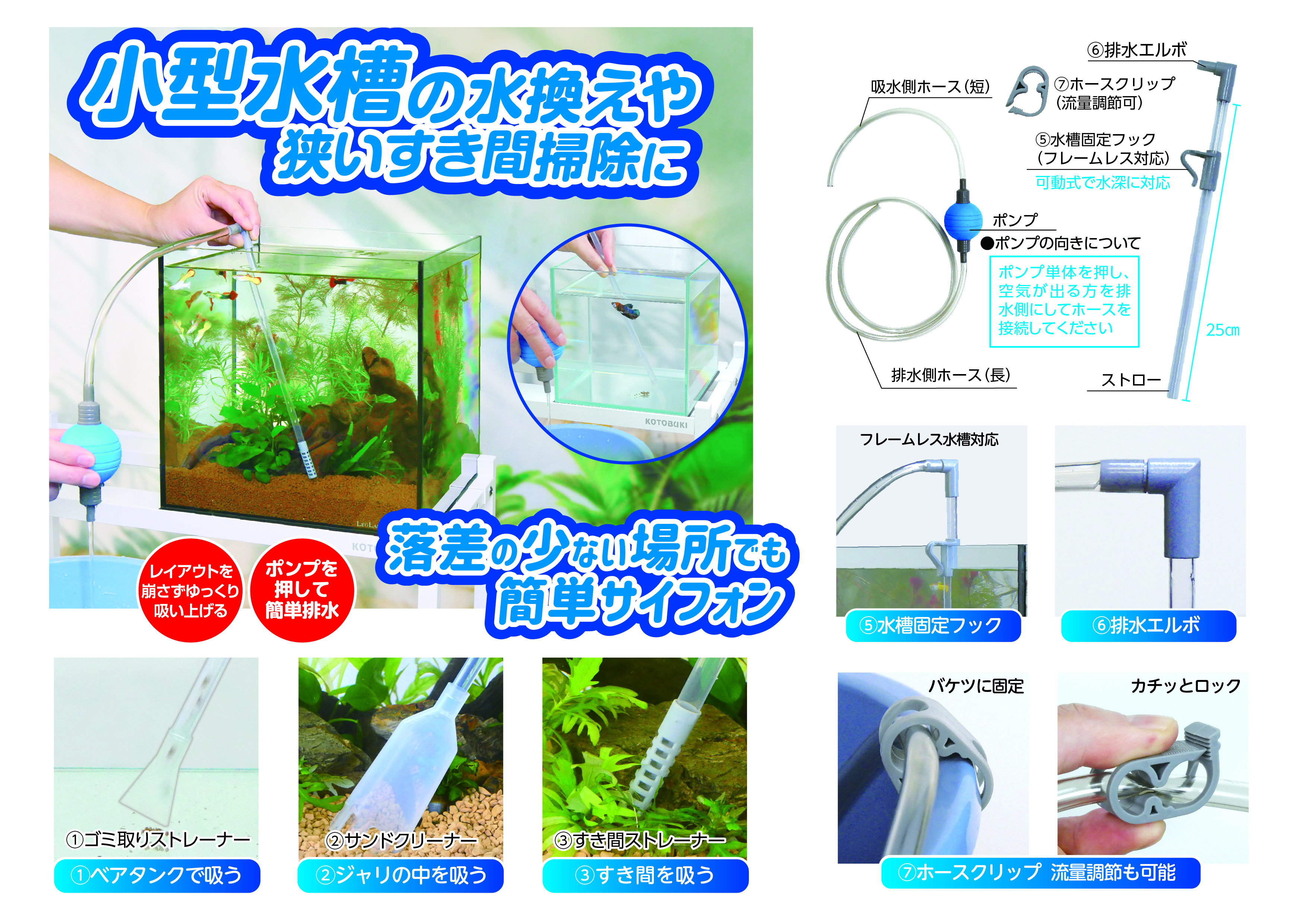 先端ストレーナー3種:①ゴミ取りストレーナー、②サンドクリーナー、③すき間ストレーナー